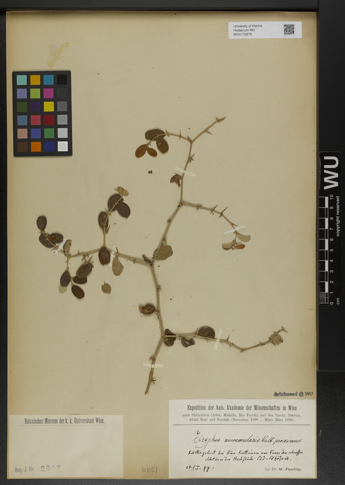 | Creator | Paulay,S. Expedition der kais. Akademie der Wissenschaften in Wien nach Südarabien (Aden, Makálla, Râs Farták) und den Inseln: Sokótra, Abdal Kuri und Semhah (December 1898-Mitte März 1899) s.n. [1899-01-28] |