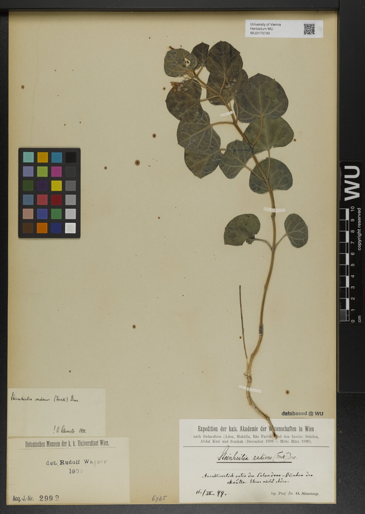 | Creator | Simony,O. Expedition der kais. Akademie der Wissenschaften in Wien nach Südarabien (Aden, Makálla, Râs Farták) und den Inseln: Sokótra, Abdal Kuri und Semhah (December 1898-Mitte März 1899) s.n. [1899-03-16] |